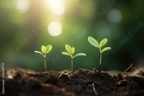 Beautiful Tree Growth - 3 Steps of Germinating and Growing Plants in Nature with Vivid Morning Light
