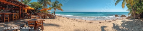 Beautiful Tropical Beachfront Bar with Ocean View. Generative AI