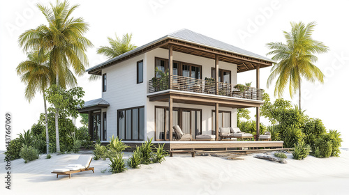beautiful vacation home surrounded by palm trees and lush greenery, perfect for relaxation