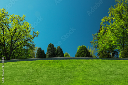 Beautiful view of landscape with fresh green grass and trees outdoors