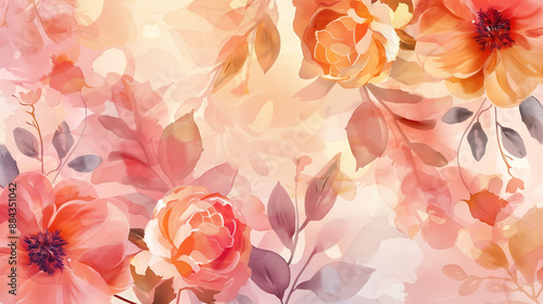Beautiful watercolor background with pastel flowers and leaves, warm colors