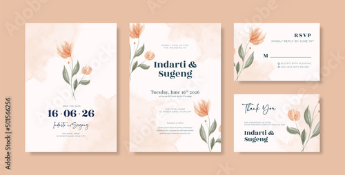 Beautiful wedding invitation template with flower watercolor