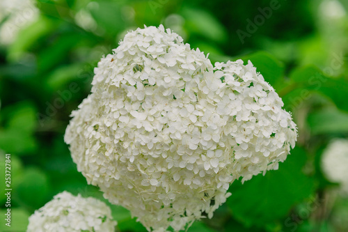 Beautiful white flowers on the bush, summertime.