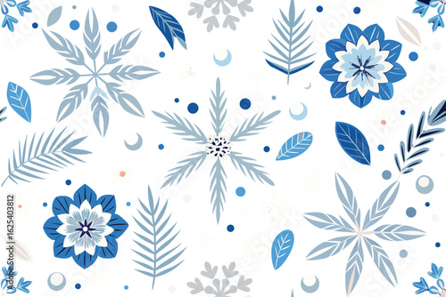 Beautiful winter snowflake and leaf pattern on black background