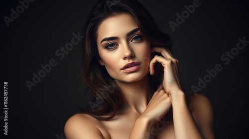 Beautiful Woman Dark Hair Dramatic Lighting Portrait Studio Shot