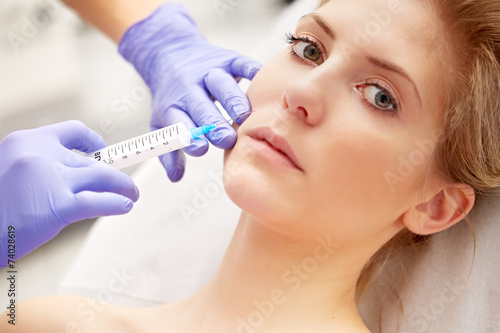 Beautiful woman gets an injection in her face