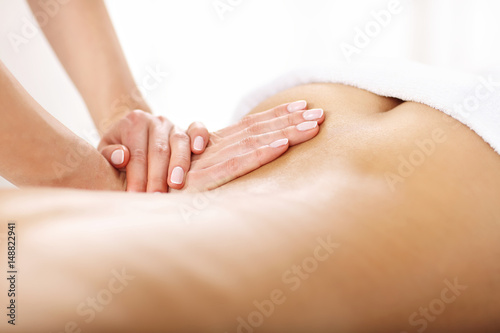 Beautiful woman getting massage in spa