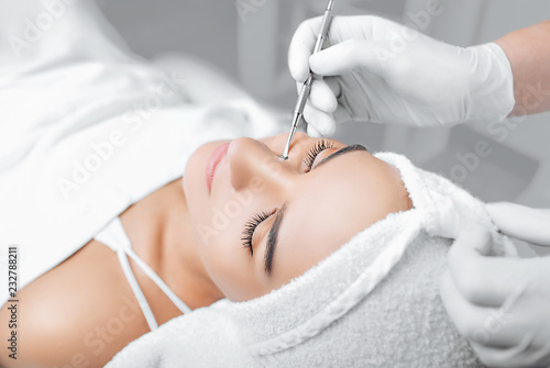 Beautiful woman having mechanical facial cleansing, remove blackhead