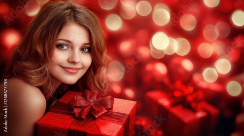 beautiful woman with red gift box christmas holiday festive back