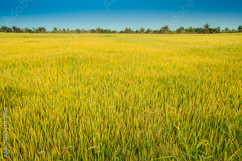 Beautiful yellow rice fields in the background with a sky ready to eat.
