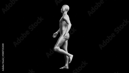 Beautiful young man posing, isolated on black background. 3d illustration (rendering). Silver mannequin, android
