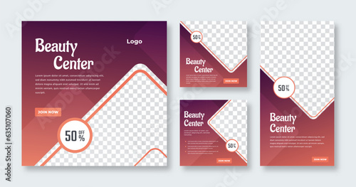 Beauty Care Spa Center Makeup Banner for Social Media Post and Web Internet Ads Square Flyer Template Set