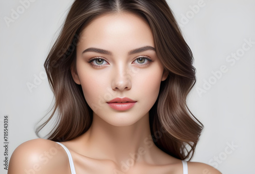 Beauty portrait of a beautiful young woman with glowing skin. Beautiful real face, beauty image.