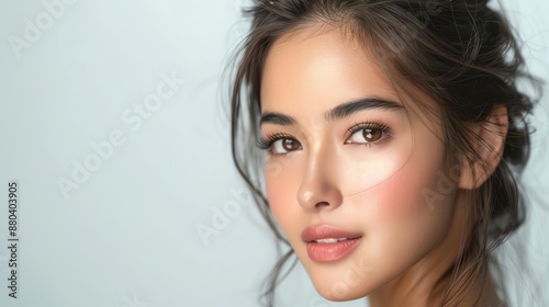 Beauty Thai woman with perfect skin, isolated on a white background, designed for advertising,
