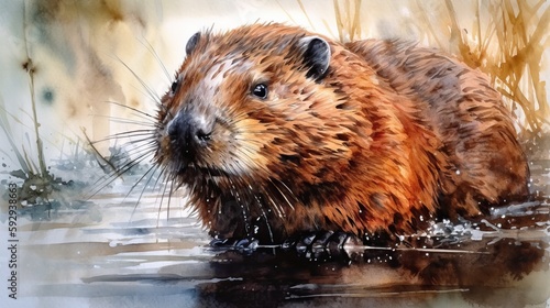Beaver Watercolor. Generative AI