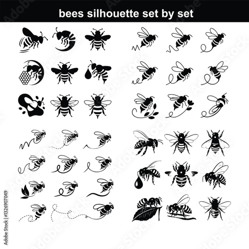 bee vector set silhouette set of bee silhouette vector illustration vector silhouette honey bee on a white background silhouette