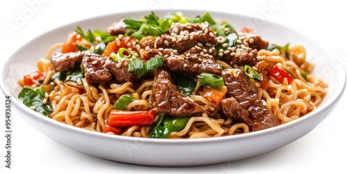 Beef and Vegetable Stir-Fry Noodles with Sesame Seeds