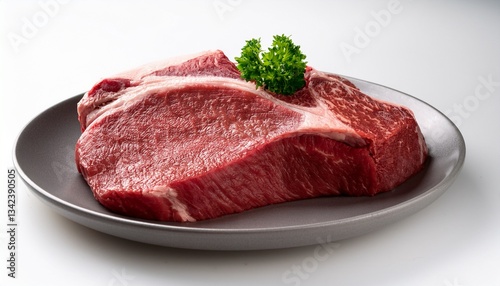 beef still in plate on white background
