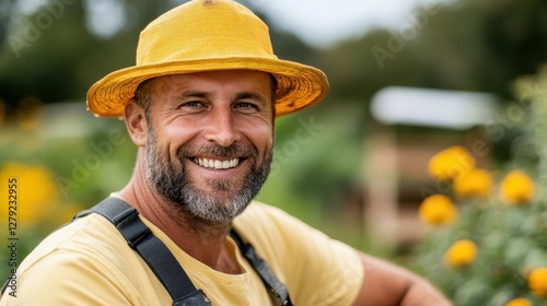 Beekeeper enjoying a sunny day while tending to the bees