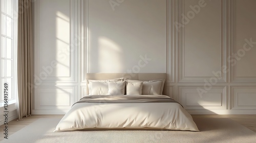 Beige Bedroom with Sunlight Streaming Through Window Creating Warm Interior