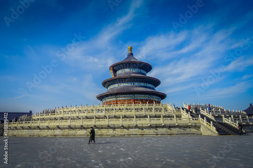 BEIJING, CHINA - 29 JANUARY, 2017: Temple of heaven, imperial complex with spectacular religious buildings located in southeastern central city area, beautiful circular ancient structure