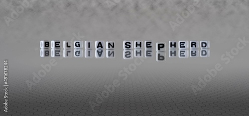 belgian shepherd word or concept represented by black and white letter cubes on a grey horizon background stretching to infinity