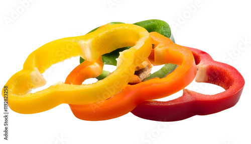 Bell pepper slices, highlighting their vibrant colors and texture. Perfect for use in culinary, health, and lifestyle themes, freshness and natural beauty. Isolated on white background