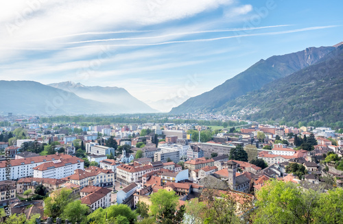 Bellinzona cityscape view and mountains