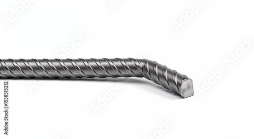 Bent rod isolated on white background, steel metallic texture, photorealistic industrial minimalist