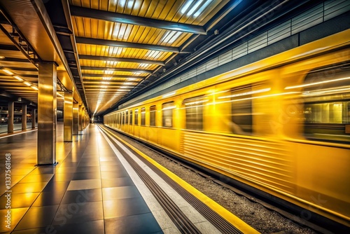 Berlin Subway Station: Yellow Train, Long Exposure Cityscape
