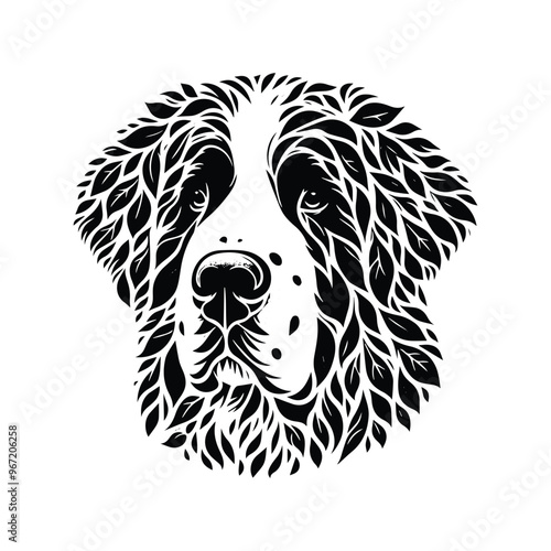 bernard dog made by simple botanical drawing, black and white animal illustration black and white animal illustration