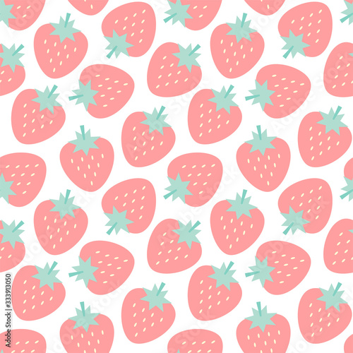 Berry pattern. Seamless pattern of pink strawberries in flat style on a white background. Vector 8 EPS.