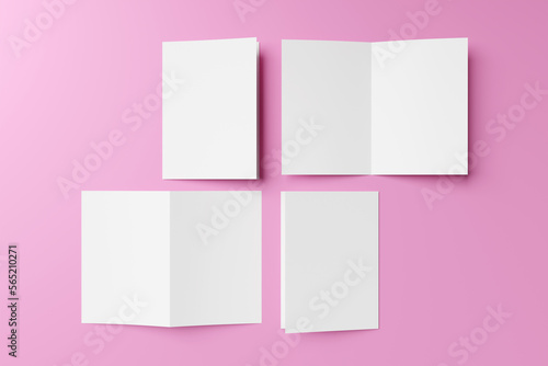 Bi fold A5 Brochure set open and close, 3d rendering