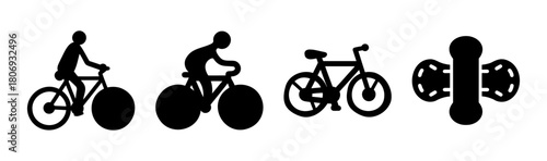 Bicycle and cyclist silhouettes with cycling related icons