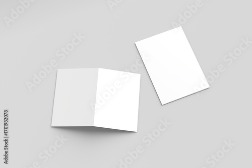 Bi-fold brochure mockup displayed on a plain, light gray surface