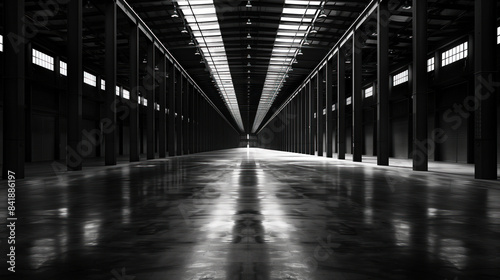 Big black empty clean warehouse. Background image. Created with Generative AI technology.