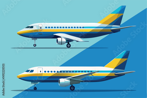Big Commercial Airplane Taking off, Side View, Isolated on White Background Vector.