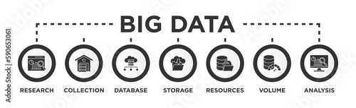Big data banner web icon vector illustration concept with icon of research, collection, database, storage, resources, volume and analysis