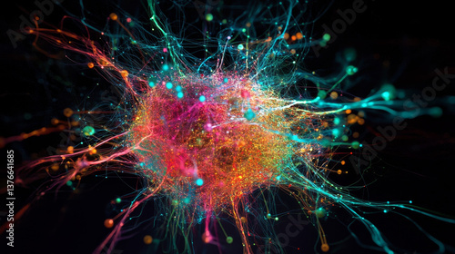Big data concept. Crystal mesh 3D illustration. Neural connections in digital brain. Data Network and Nanotechnology in Cyberspace