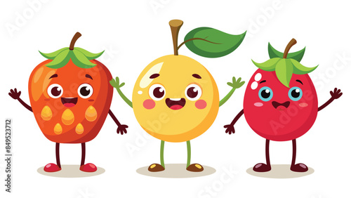 Big Set cute cartoon realistic fruits characters