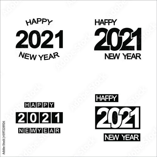 Big Set of 2021 Happy New Year logo text design. 2021 number design template. Collection of 2021 happy new year symbols. Vector illustration with black labels isolated on white background.