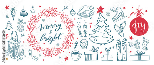 Big set of Christmas design doodle elements with Merry Christmas and New Year