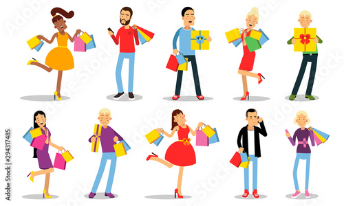 Big Set Of Ten Vector Illustrations With Shopping Concept