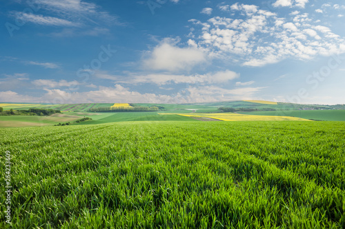 Big wheat fields on hill