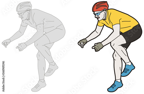 Biker's silhouette - no bike. Enduro cycler on the tour. Effort and strengh.