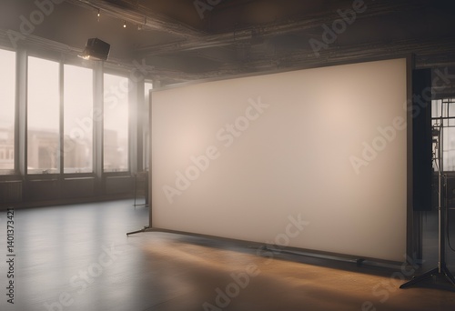 billboards blank lamps illuminated room floor grey exposition advertising copy mock light black billboard space banner spotlight background illuminating template concept gallery empty three poster