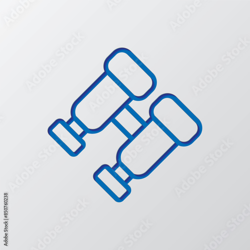 Binoculars simple icon. Flat design. Paper cut design. Cutted blue symbol with shadow. Gray background