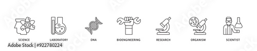 Biotechnology icon sett lineal illustration concept with icon of scientist, bioengineering, organism, research, dna, laboratory, science icon live stroke and easy to edit