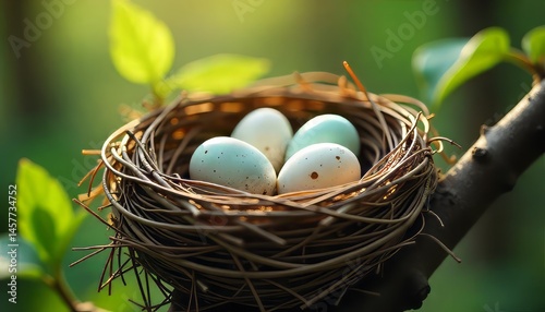 Bird Eggs in Nest on Branch