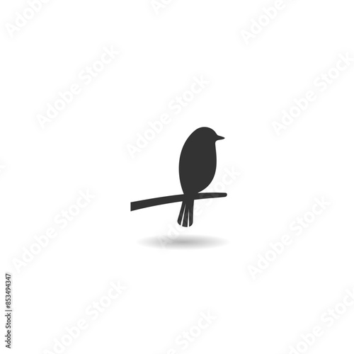 Bird silhouette on branch icon with shadow